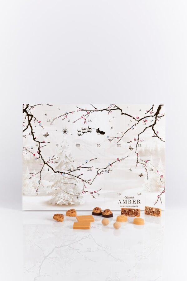 Den gyldne og silkebløde Amber Classic-chokolade er temaet i årets Amber-julekalender. Den indeholder et håndplukket udvalg af Summerbirds mest populære Amber-varianter. Fra rene eller dekorerede bars til fyldte chokolader og dragerede hasselnødder.