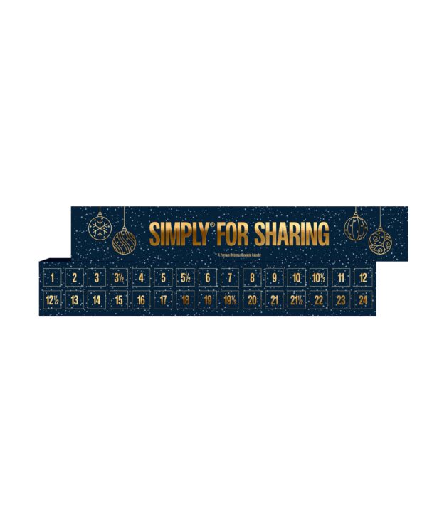 Chokoladejulekalender – SIMPLY® FOR SHARINGHer er den perfekte julekalender til kæresteparret eller blot til dig, der elsker premium chokolade. Kalenderen indeholder hele 30 låger med hver to chokolader. Glæd dig til en blanding af premium chokolade kombi
