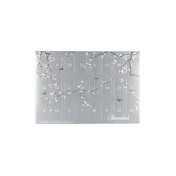 Summerbird Classic Christmas Calender e tapet, som dekorerer alle vores Summerbird-chocolaterier. Julekalenderen er fyldt med vores unikke chokoladebarer og raffinerede fyldte chokolader. Julekalenderen indeholder 12 forskellige varianter. Der gemmer sig